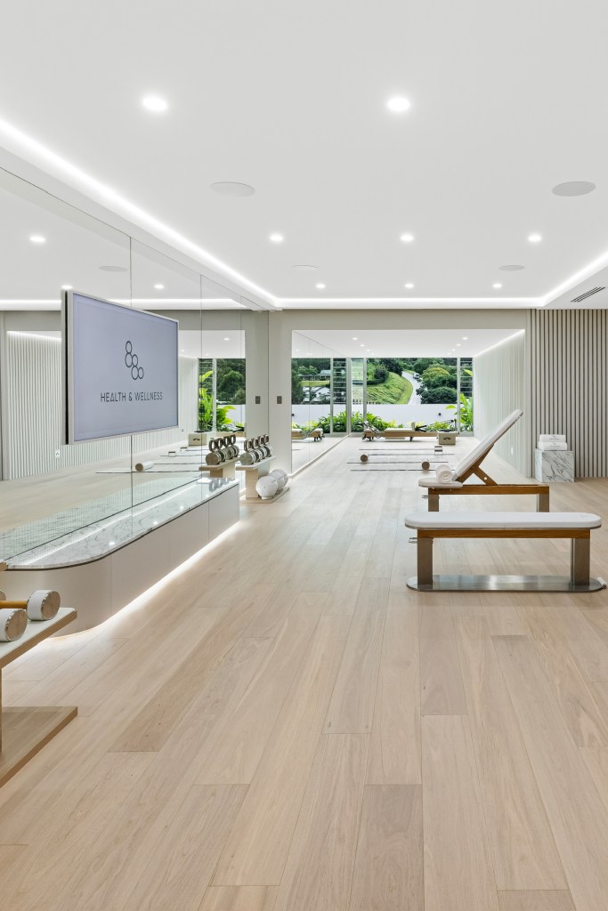 The health and wellness centre alone spans 152-squares, with 52 handmade gym items, Pilates reformers, a seated steam room and a seated infrared sauna. It’s kitted out with timber, white leather and brushed silver finishes and a fully-stocked hydration station. The fun park features a 160-metre racetrack, 45-metre putting green and 20-metre infinity pool, as well as a racing simulator and basketball court that overlooks the Gold Coast.
