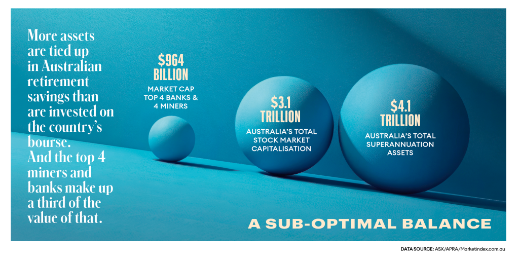It’s a $3 trillion market, and the top eight stocks, the four banks and the four big miners, they are $1 trillion of the market effectively. That’s not normal and probably not the way you want to invest your money long term. You’re pretty exposed to particular sectors.