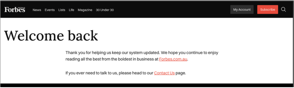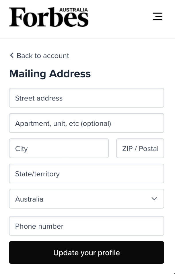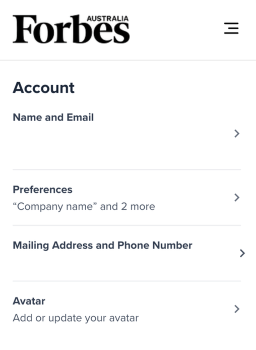 Follow the steps below to update your contact details in your Forbes Australia account.