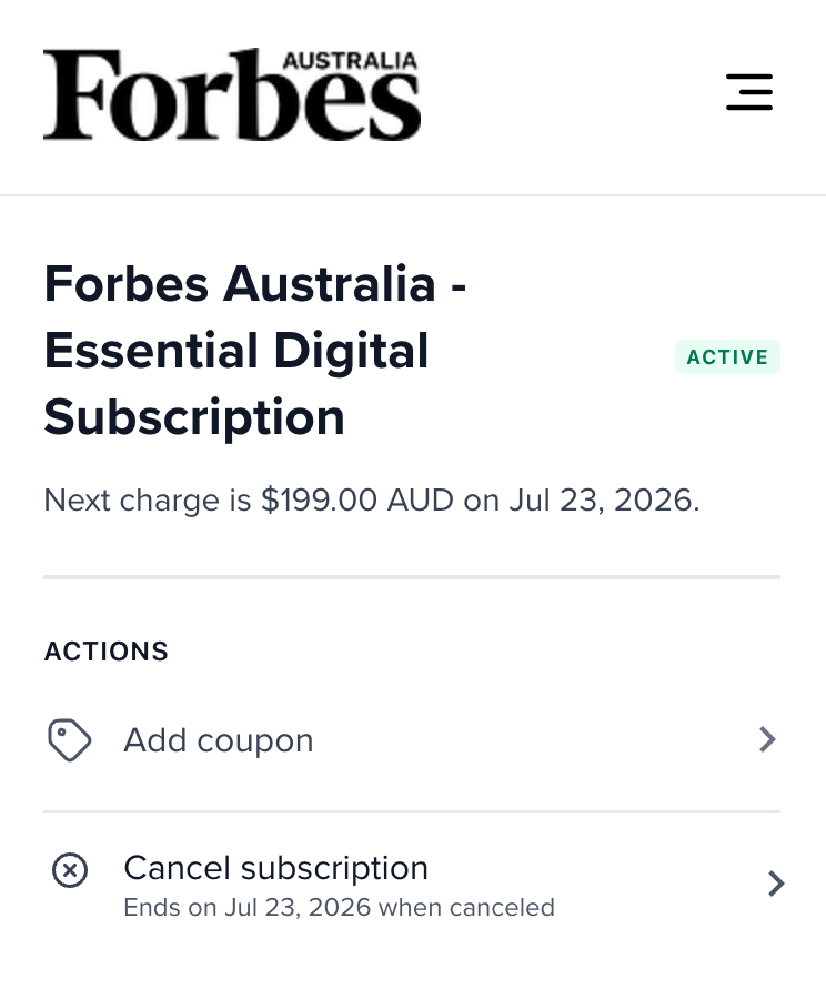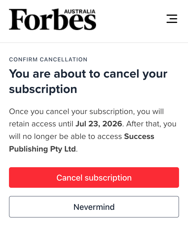 Follow these steps to cancel your Forbes Australia subscription quickly and securely.