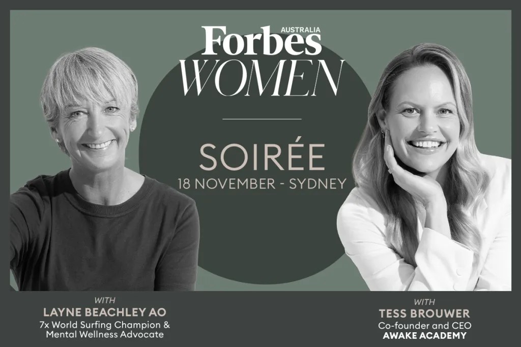Mark your calendar for November 18. This Soirée will feature Layne Beachley AO, seven-time world champion surfer and one of Australia’s most celebrated athletes, and Tess Brouwer, founder of Awake Academy, an education platform empowering people to unlock courage, clarity and confidence in every area of life.