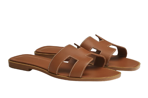 Hermès’ Oran sandal remains a dependable summer classic, cut in smooth Box calfskin with the house’s sharp H silhouette. Easy to pair, easy to wear and offered in a wide run of colours, it’s the kind of gift that lands well every time.