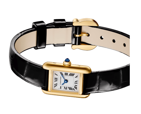 Worn by the likes of Jackie Kennedy and Princess Diana, the Tank Louis Cartier has earned its place as a true style icon. The mini version distils the design down to its essentials: an 18K yellow gold case, a sapphire crown, and a timeless alligator strap.