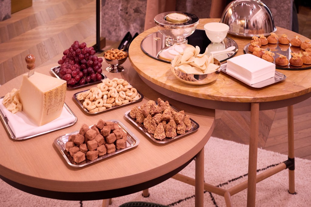 The setting matched the tone as guests were treated to Perrier-Jouët champagne and a platter of caviar and cheese from Stories to Gather, as Davison answered questions about tailoring and proportion.