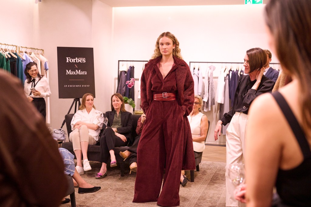 The audience – a mix of founders, executives and Forbes Women members – listened as models moved through Max Mara’s new collection of long coats, ribbed knits and muted shades of berry and hazelnut.