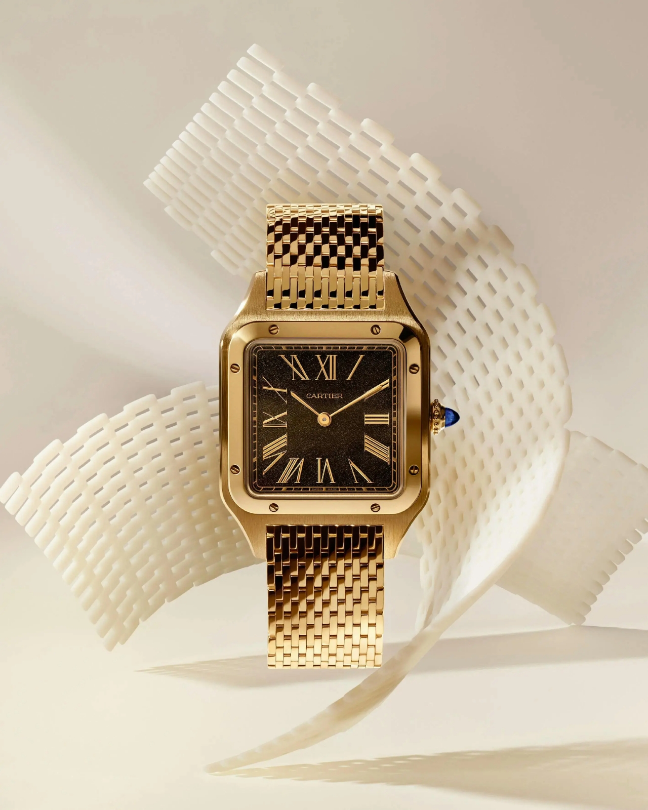 We’ll spare you a lot of speculation around the current volatility of gold prices, but for now, it’s fair to say that if you’re the sort of collector who has gravitated toward lavish designs in recent years (like 2025’s Reverso ‘Milanese’) then the allure of a solid-gold Santos-Dumont, with an obsidian dial to boot, should be self-explanatory.