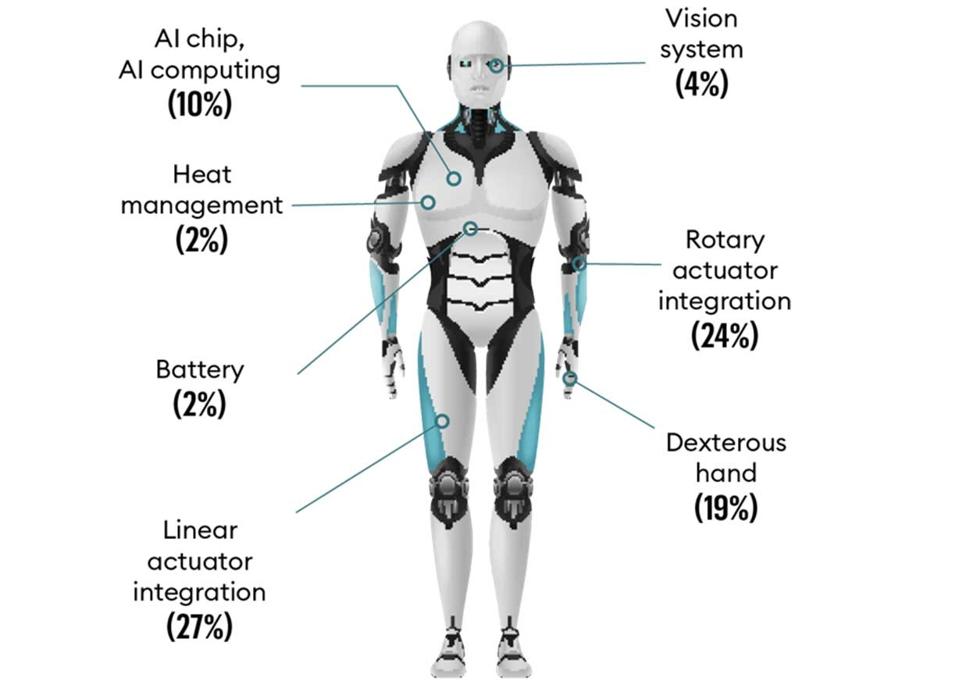 The average $35,000 build cost of a humanoid could more than halve by 2030-2035. Here’s how much each component costs in percentage terms today.