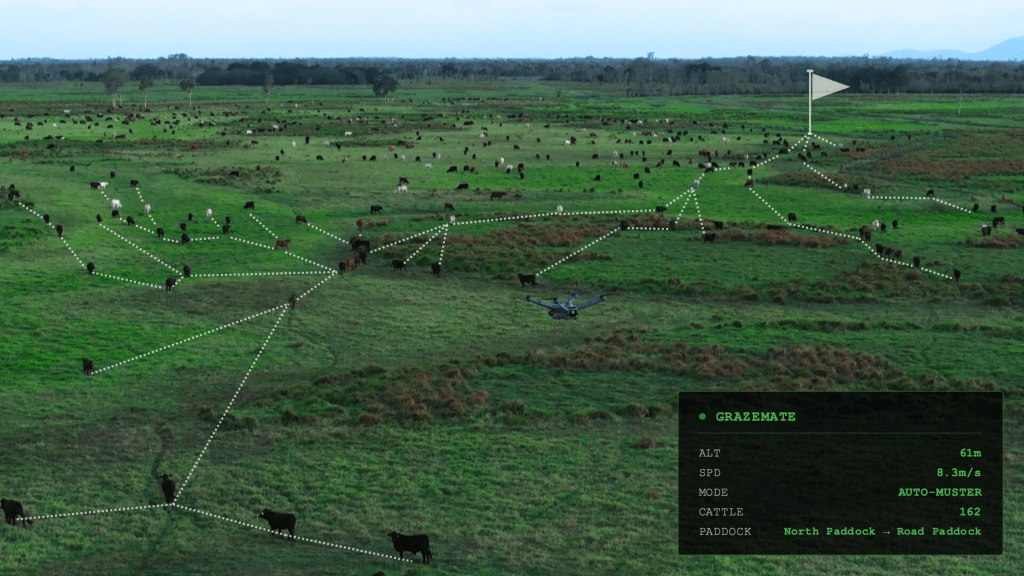“A farmer’s time is their most limited resource; most operations are family-run, and labour’s a fixed commodity,” says Rogers. “What’s different about GrazeMate is that it runs itself. Instead of piloting, the farmer simply sets the task and the system executes it, making decisions in real time based on how the herd moves, then reporting back everything it sees.”